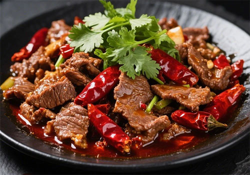 黔食锦干辣椒在热油中“滋啦”一声苏醒过来,红艳艳的辣椒段在锅中翻滚,像一群穿着红裙的舞者。老师傅手腕一抖,整锅辣椒腾空而起,在空中划出一道红霞,又稳稳落回锅中。